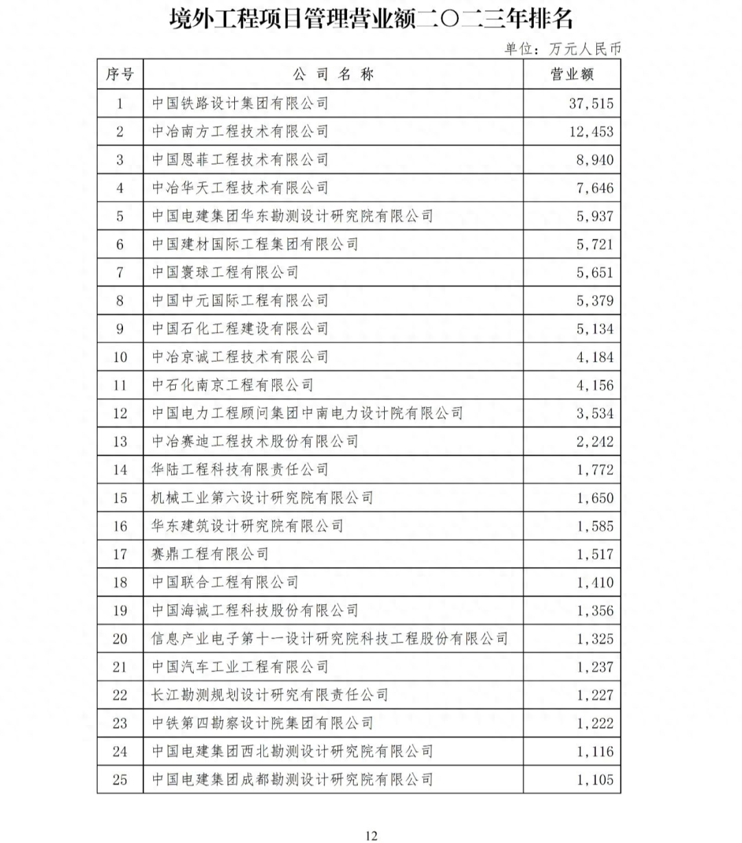 在各地方、各部門勘察設(shè)計(jì)同業(yè)協(xié)會(huì)支持與配合下,相關(guān)企業(yè)完成了工程項(xiàng)目管理、工程總承包等各項(xiàng)排序數(shù)據(jù)的自主申報(bào)工作,各地方、各部門勘察設(shè)計(jì)同業(yè)協(xié)會(huì)和總承包分會(huì)秘書處按照《勘察設(shè)計(jì)企業(yè)工程項(xiàng)目管理和工程總承包營(yíng)業(yè)額排名活動(dòng)管理辦法》(2018年修訂)對(duì)企業(yè)的申報(bào)數(shù)據(jù)進(jìn)行了審核、匯總和復(fù)核?,F(xiàn)批準(zhǔn)公布工程項(xiàng)目管理、工程總承包、境外工程項(xiàng)目管理、境外工程總承包營(yíng)業(yè)額二〇二三年排名(詳見(jiàn)附件)。
