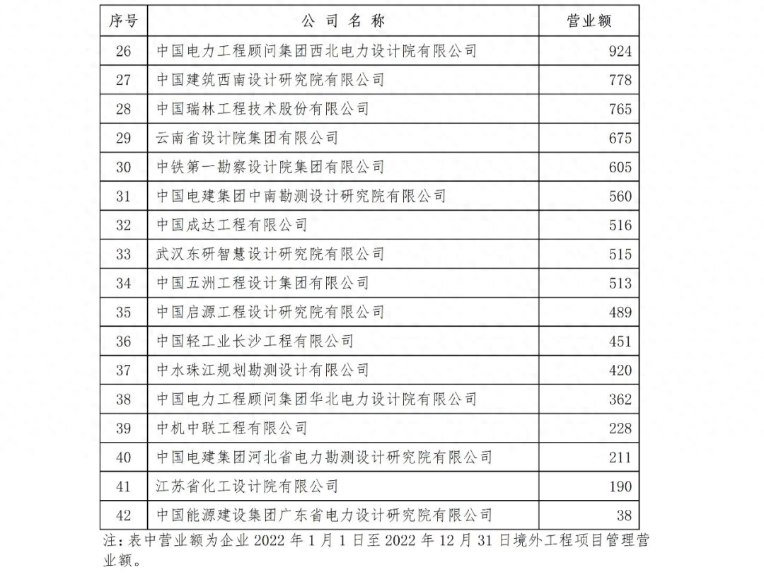 關(guān)于公布勘察設(shè)計(jì)企業(yè)工程項(xiàng)目管理和工程總承包營(yíng)業(yè)額二〇二三年排名的通知