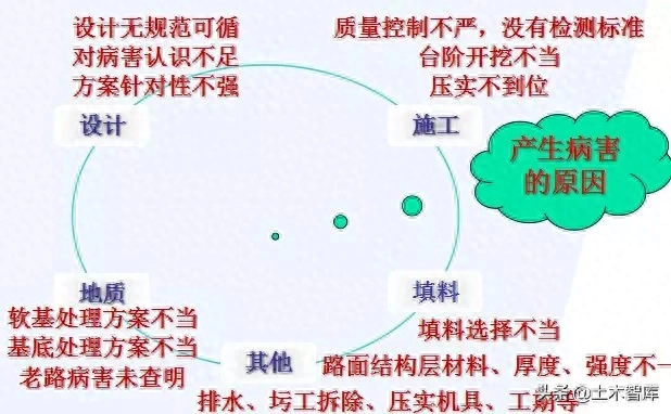 主要包含路面損壞狀況、路面結(jié)構(gòu)強(qiáng)度狀況、路基損壞狀況、沿線設(shè)施損壞狀況。新老路基路面的拼接設(shè)計(jì),可預(yù)防質(zhì)量通病。