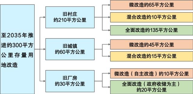 《專項(xiàng)規(guī)劃》統(tǒng)籌新增用地與存量用地資源配置,規(guī)劃至2025年,累計(jì)推進(jìn)城市更新約130平方公里(含城中村改造70平方公里);至2030年,累計(jì)推進(jìn)城市更新約230平方公里(含城中村改造120平方公里);至2035年累計(jì)推進(jìn)城市更新約300平方公里(含城中村改造155平方公里),通過微改造、混合改造、全面改造多種方式并舉,推動(dòng)低效存量土地的盤活再利用。