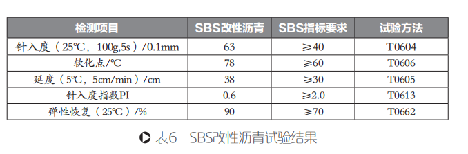 瀝青基層:瀝青基層采用改性瀝青混合料,膠結(jié)料采用SBS改性瀝青,礦料級(jí)配采用AC-25粗型級(jí)配,其SBS改性瀝青技術(shù)指標(biāo)如表6所示。