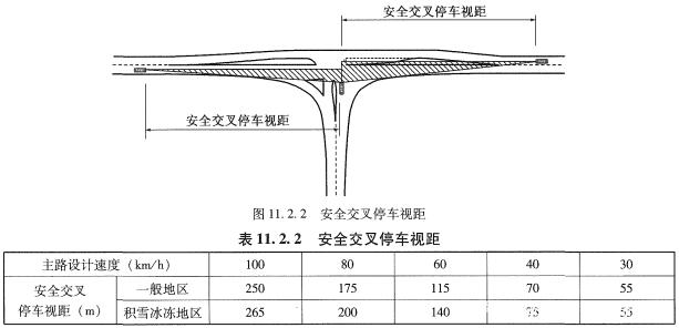 《細則》11.5.2條規(guī)定兩相鄰平面交叉的最小間距,包括設(shè)置加減速車道和交織車道,該規(guī)定值一般大于安全停車視距。