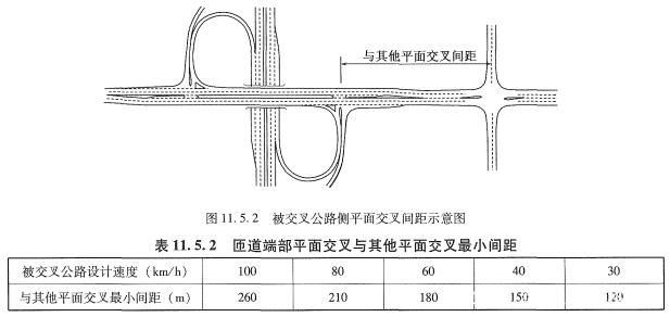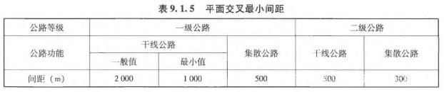 《標準》9.1.5條,針對不同功能定位、不同技術(shù)等級的公路平面交叉最小間距,應(yīng)不小于表中規(guī)定值。