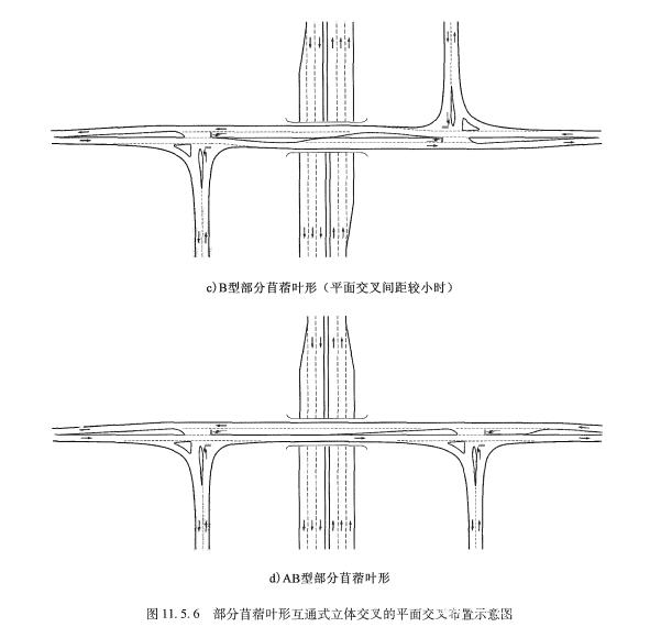 當平面交叉不滿足設(shè)計通行能力要求時,應(yīng)調(diào)整互通形式或增加立體交叉匝道,減少交叉沖突交通量。