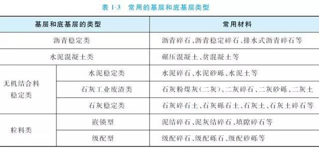 修筑基層和底基層的材料主要有各種結(jié)合料(如石灰、水泥、瀝青等)穩(wěn)定土或穩(wěn)定碎(礫)石、貧水泥混凝土、天然砂礫、碎石、礫石、片石、塊石,各種工業(yè)廢渣(如煤渣、粉煤灰、礦渣、石灰渣等)和土、砂、石所組成的混合料等。常用的基層和底基層類型見(jiàn)表1-3。
