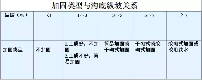 5.急流槽:在陡坡或深溝地段設置的坡度較陡、水流不離開槽底的溝槽稱作急流槽。急流槽的作用是在較短的距離內(nèi)以溝渠的方式引排水流、降低水頭,進而防止沖刷(可用于比跌水更陡的坡度,可達600)。