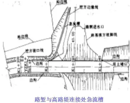 在路堤較高,邊坡坡面在未做防護而易遭受路面表面水流沖刷,或者坡面雖已采取防護措施但仍有可能受到?jīng)_刷時,應沿路肩外側(cè)邊緣設置攔水帶,匯集路面表面水,然后通過泄水口和急流槽排離路堤。