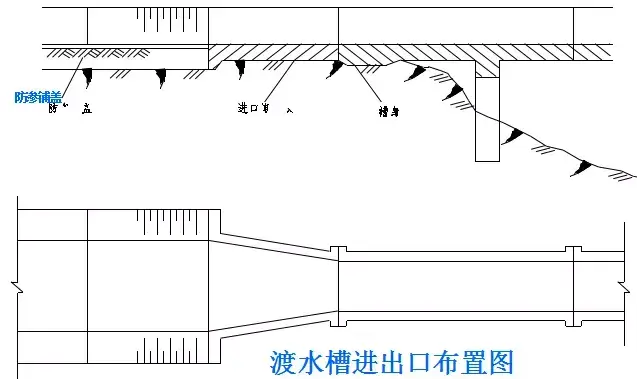 (1)設置要點:不宜過長,溝底應具有1%~2%的縱坡,出水口底面標高應高出溝外最高水位20cm,以防水力倒?jié)B。