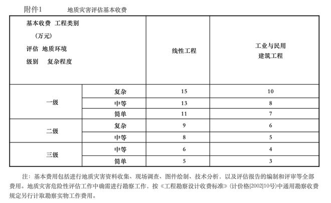 附件1:地質(zhì)災(zāi)害評(píng)估基本收費(fèi)