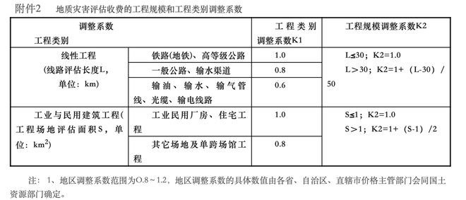 附件2:地質(zhì)災(zāi)害評(píng)估收費(fèi)的工程規(guī)模和工程類(lèi)別調(diào)整系數(shù)