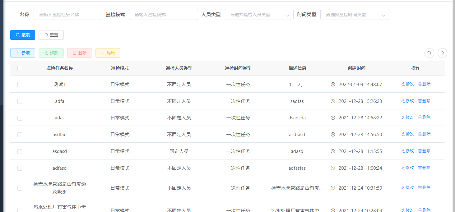 巡檢模塊運(yùn)維人員每天都會(huì)定期巡檢,巡檢由于客服,運(yùn)維和業(yè)主都能發(fā)起一個(gè)巡檢任務(wù),由客服指定給相應(yīng)的運(yùn)維人員去巡檢,運(yùn)維人員也可以主動(dòng)去巡檢。