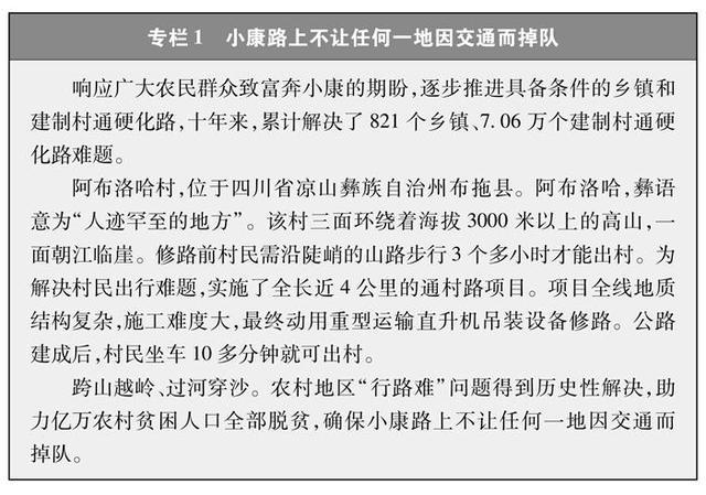通達(dá)深度全面提升。實(shí)現(xiàn)了具備條件的約3萬(wàn)個(gè)鄉(xiāng)鎮(zhèn)、超過(guò)50萬(wàn)個(gè)建制村全部通硬化路(專欄1)。有序?qū)嵤┝溯^大人口規(guī)模自然村(組)通硬化路建設(shè)。旅游景點(diǎn)、產(chǎn)業(yè)園區(qū)、資源礦產(chǎn)等農(nóng)村地區(qū)主要經(jīng)濟(jì)節(jié)點(diǎn)的通硬化路問(wèn)題基本解決。偏遠(yuǎn)地區(qū)尤其是山區(qū)農(nóng)民群眾對(duì)外出行更加便捷。