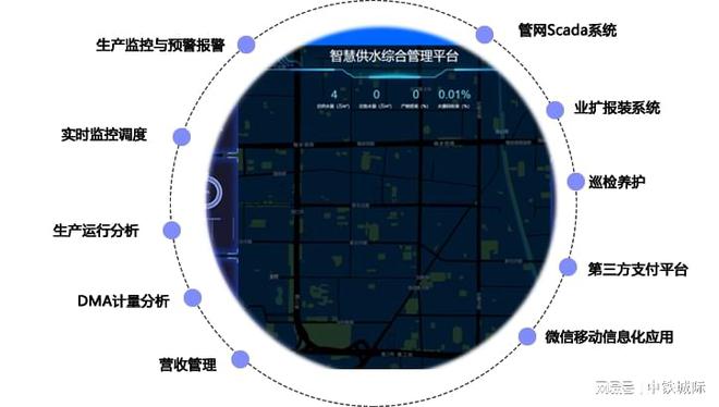 中鐵城際智慧供水平臺介紹平臺運(yùn)用BIM、GIS、IOT(分布式系統(tǒng)、大數(shù)據(jù)分析、GIS查詢與服務(wù)、大屏數(shù)據(jù)可視化)等新一代信息技術(shù)與水務(wù)業(yè)務(wù)深度融合,通過充分挖掘數(shù)據(jù)價(jià)值,統(tǒng)網(wǎng)管控消除信息孤島,監(jiān)測收集—建模分析—智能預(yù)警—應(yīng)對策略,構(gòu)建城市水務(wù)物聯(lián)網(wǎng)、城市統(tǒng)管一張圖,保障水務(wù)設(shè)施安全、高效、科學(xué)運(yùn)行。