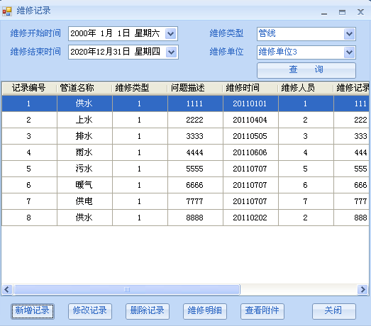 4.對各種管線的維護(hù)信息做到及時(shí)統(tǒng)計(jì),使管理人員能及時(shí)掌握管線的運(yùn)行情況,對管線進(jìn)行動(dòng)態(tài)維護(hù)和管理。 實(shí)現(xiàn)各種管線管理維護(hù)的績效分析(質(zhì)量、效率、成本)。