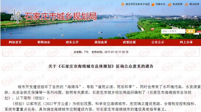 石家莊市海綿城市整體規(guī)劃出爐 空間格局及功能區(qū)劃曝光