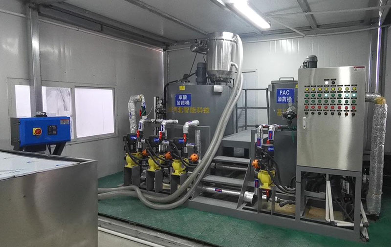 智能反饋功能可根據(jù)出水 SS 、 PH 等相關(guān)指標(biāo)的高低來判斷加藥量是否合適,若實(shí)際出水監(jiān)測值和設(shè)計(jì)值出現(xiàn)較大偏差,程序會(huì)自動(dòng)修正加藥量,達(dá)到合理的出水指標(biāo)。
